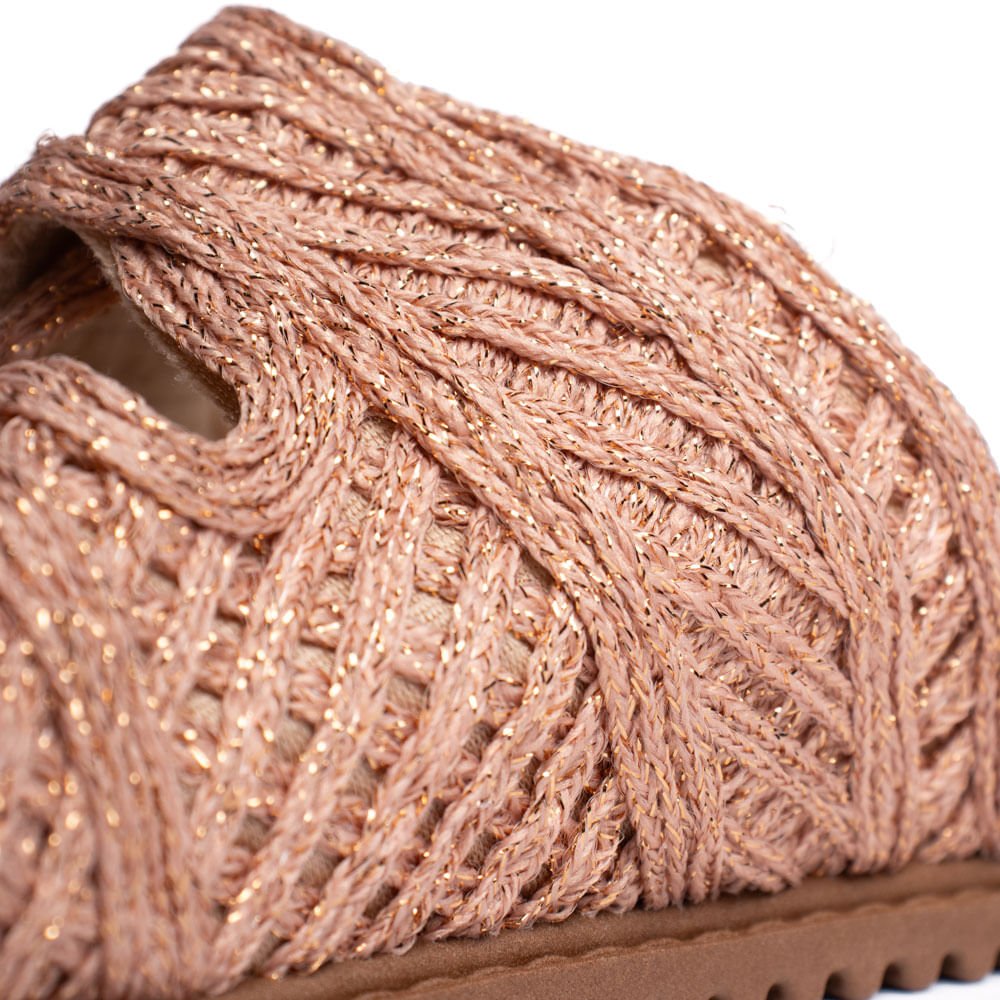Diferencial: Cabedal com brilho e detalhe em tecido trançado