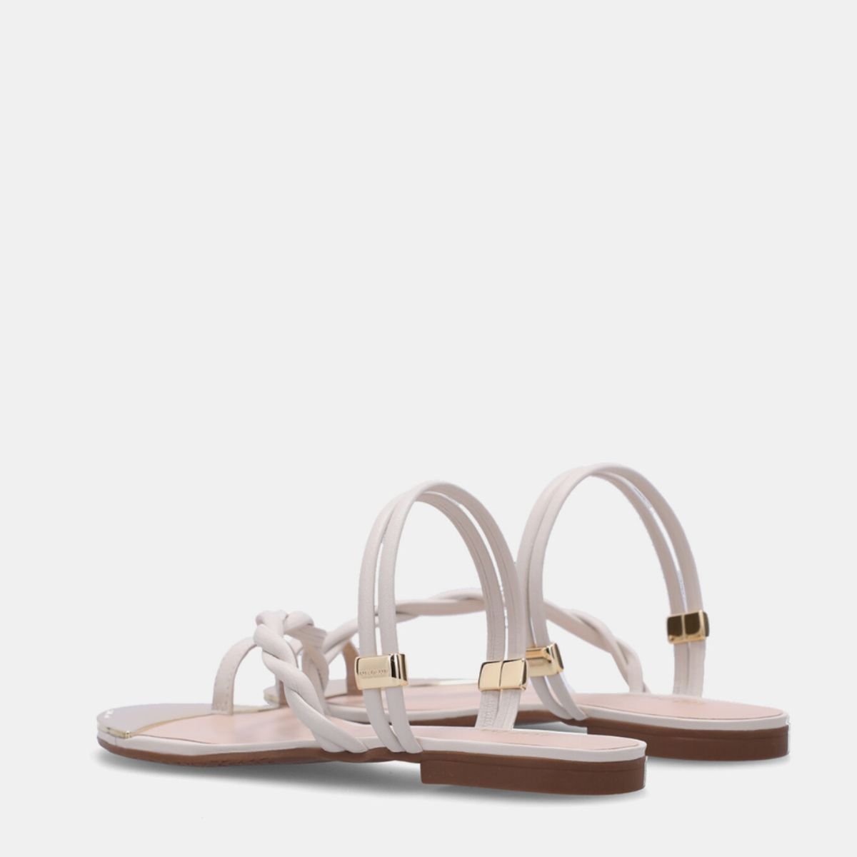 As pecas de metal dourado e as tiras adaptaveis transformam o produto em dois em um permitindo utilizar o modelo como rasteira