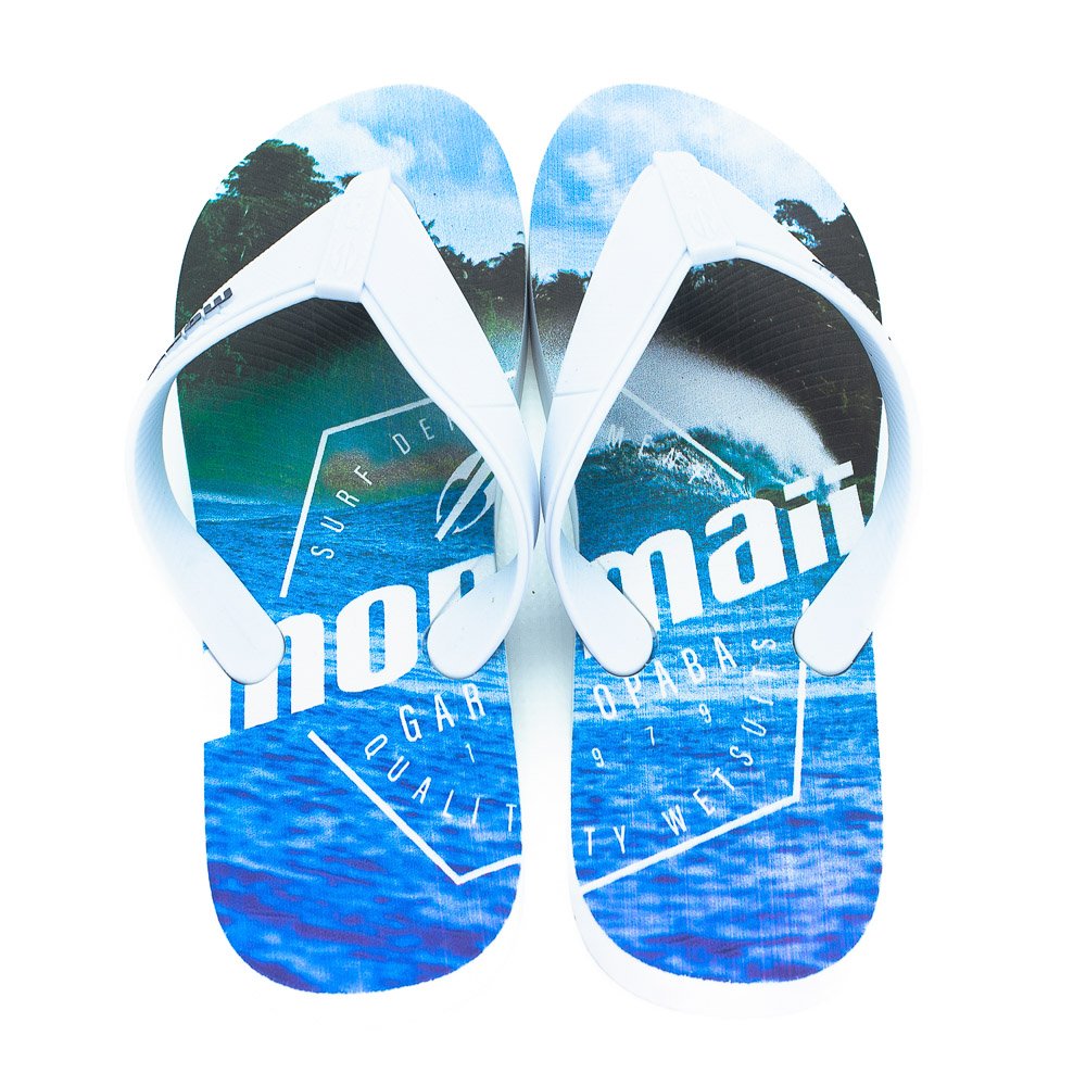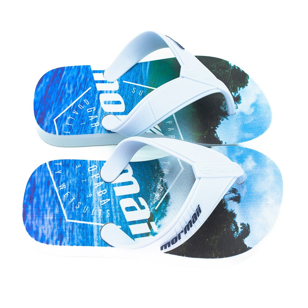 Ref: O Chinelo Tropical recebe grafias que trazem uma pegada urbana ao universo tropical de Mormaii, através da presença das listras e outros elementos geométricos. O lettering em degradê com o big logo não pode ficar de fora, sendo a opção perfeita para os fãs da marca e do surfwear.