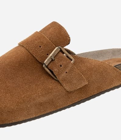 Ref: Chinelo masculino, modelo mule, confeccionado em material mais sustentável, com fechamento frontal, tira larga, fivela de metal. Modelo confortável para o dia a dia.
