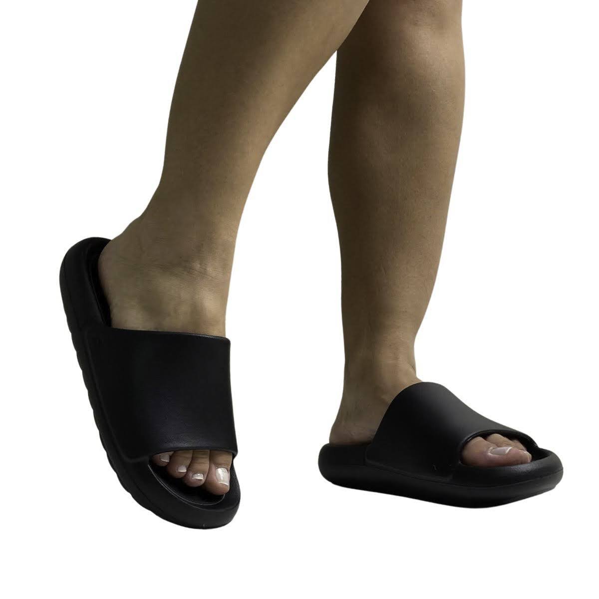 Chinelo Petite Jolie Feminino PJ7639 Preto. O Chinelo Slide HUG foi desenvolvido em J-Flow Ultra Soft, material superleve e macio que proporciona conforto durante todo o dia. Seu design minimalista com palmilha anatômica une praticidade, estilo e um toque urbano, ideal para acompanhar diferentes momentos da sua rotina. Versátil e moderno, é perfeito para compor looks descomplicados, mas cheios de personalidade. Um modelo que traduz atitude e bem-estar em cada passo.