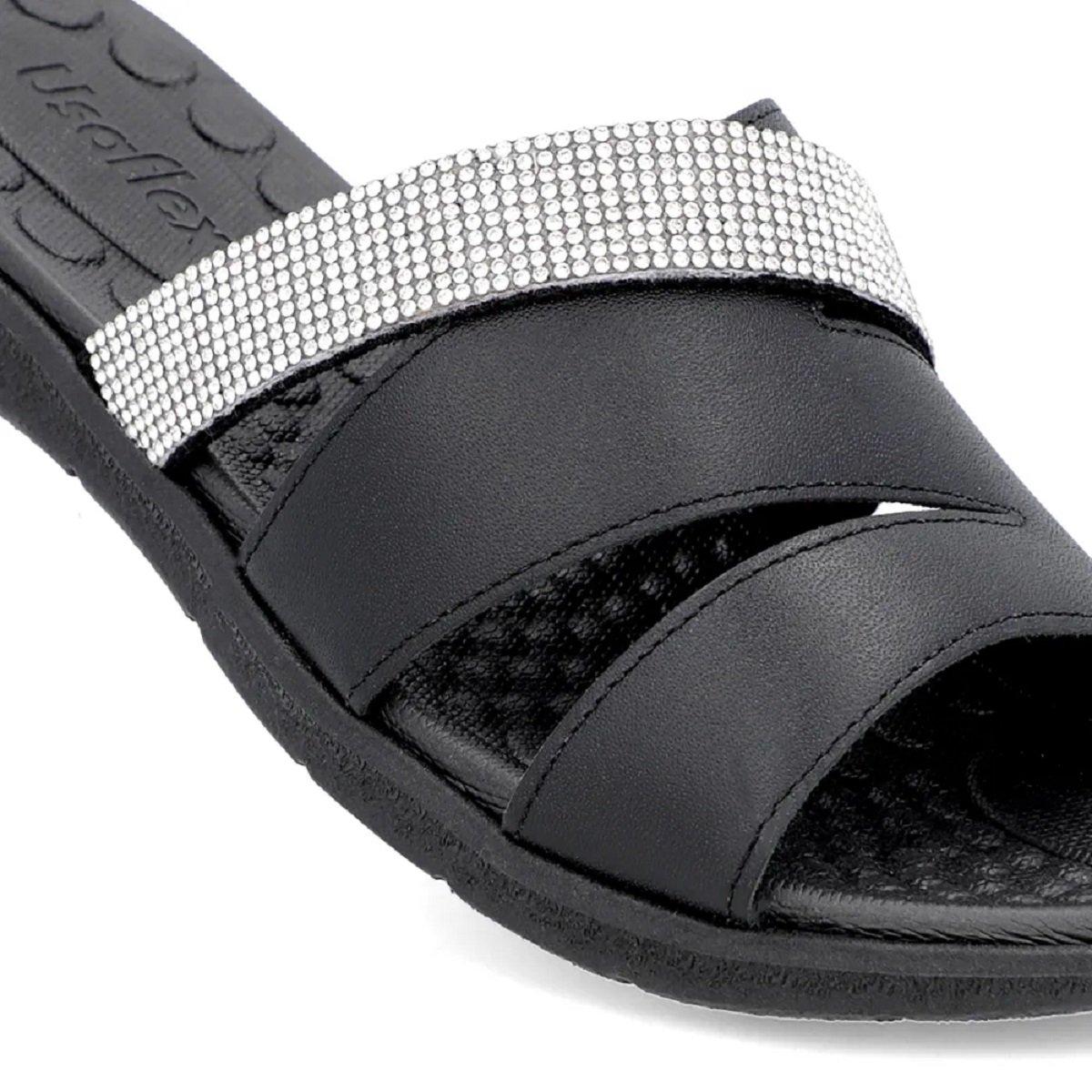 Experimente o Chinelo Slide Couro Strass com Amortecedor e Palmilha Massageadora e descubra o equilíbrio perfeito entre elegância e conforto. Seus pés merecem esse cuidado especial!