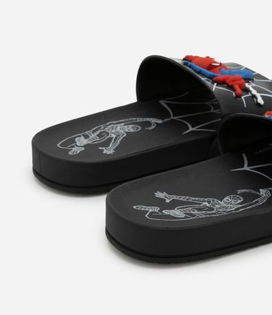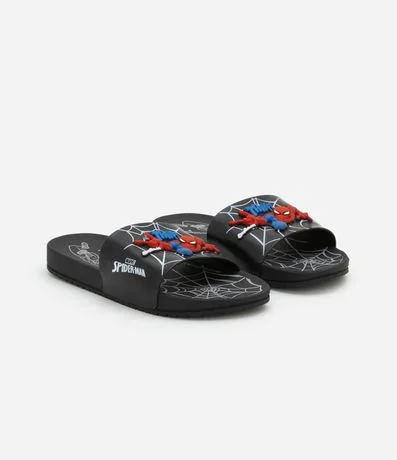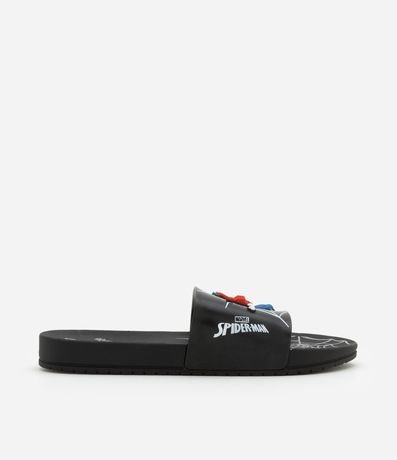 Ref: Chinelo infantil confeccionado em plástico, de modelo slide e com estampa e patch do Homem Aranha.