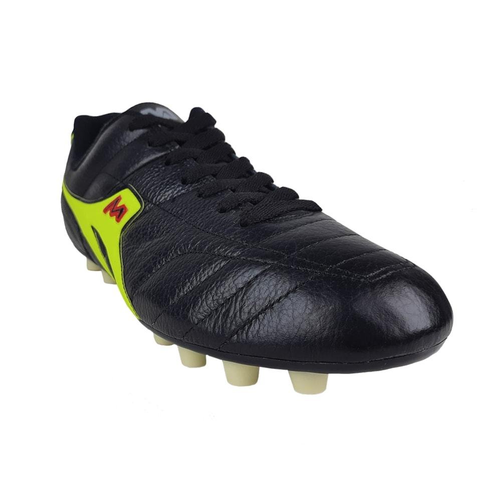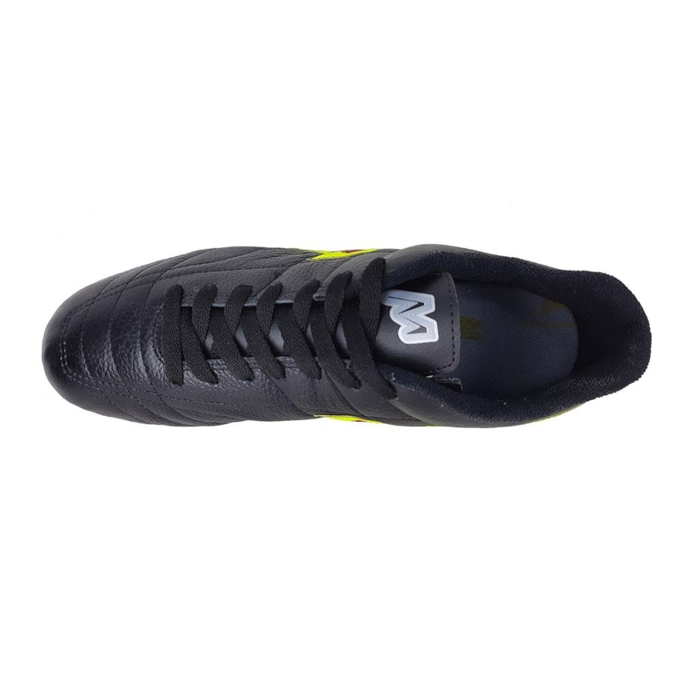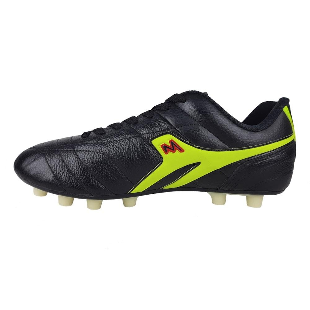Chuteira de Campo Mathaus Premium Couro Adulto Preto/Limão