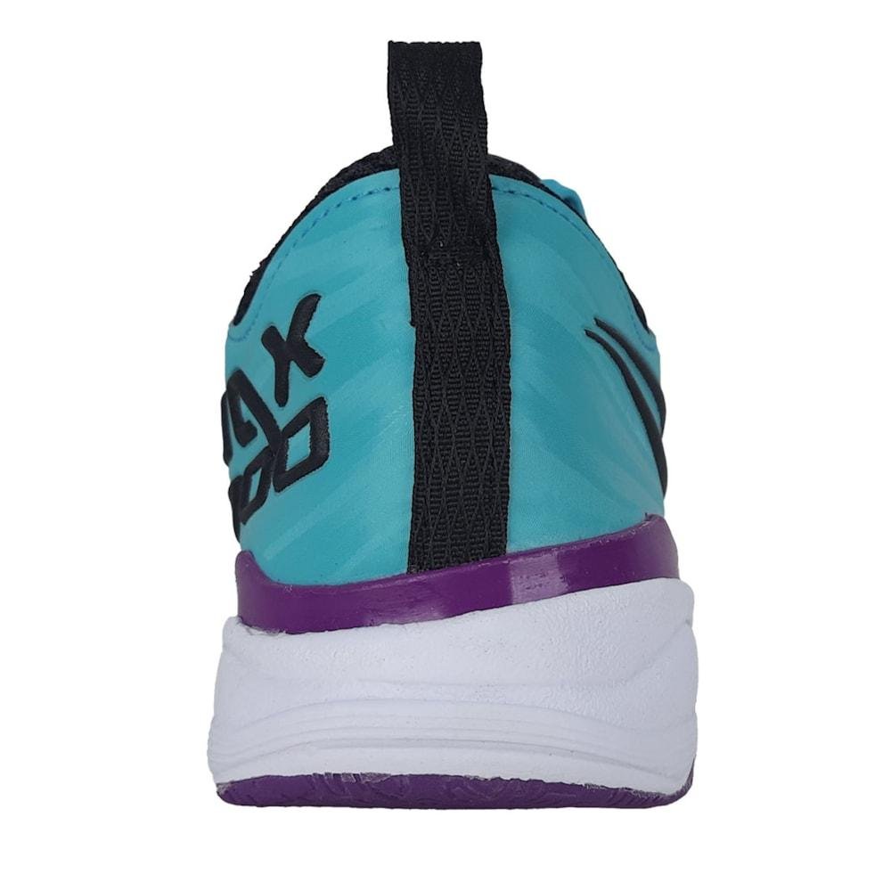 A entressola Neo Cushion conta com canaletas posicionadas para auxiliar na redução do impacto e ajudar na redução de lesões, contando com alta memória celular que proporciona maior resistência e rápida recuperação das características iniciais de amortecimento. Modelo: Max 1000 Locker Ecoknit; Cor: Turquesa/Preto; Gênero: Unissex; Marca: Penalty; Tecnologias: Molix, Non-Marking, Ultra Grip, Rotate, Neo Cushion; Composição: Material Sintético, Borracha; Tipo de Pisada: Neutra;