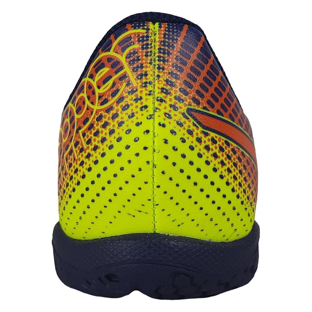 Possui solado emborrachado que auxiliam durante os movimentos rápidos, seu cabedal em sintético com fechamento em tira aderente, dispensando o uso de cadarços, assim garantindo resistência e durabilidade enquanto você foca no jogo.