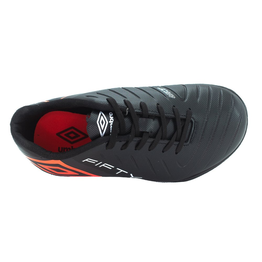 Ref: A Chuteira Society Umbro Fifty VI League é indicada para jogadores iniciantes. O modelo segue design com duas cores diferentes, oferecendo um visual moderno e diferenciado. A boca do calçado é deslocada para o lado externo, garantindo um ajuste adaptável e confortável, além de priorizar a área de chute sem sobreposição dos cadarços. Possui cabedal em material laminado com textura e alta frequência frontal, projetado para melhorar o grip e o domínio da bola. O forro traseiro em mesh com acabamento luvado no colarinho, oferece maior resistência à abrasão. A palmilha em EVA e forrada em tecido, traz conforto adicional. E o solado de futebol society HG em PVC com travas em barra e chevron.