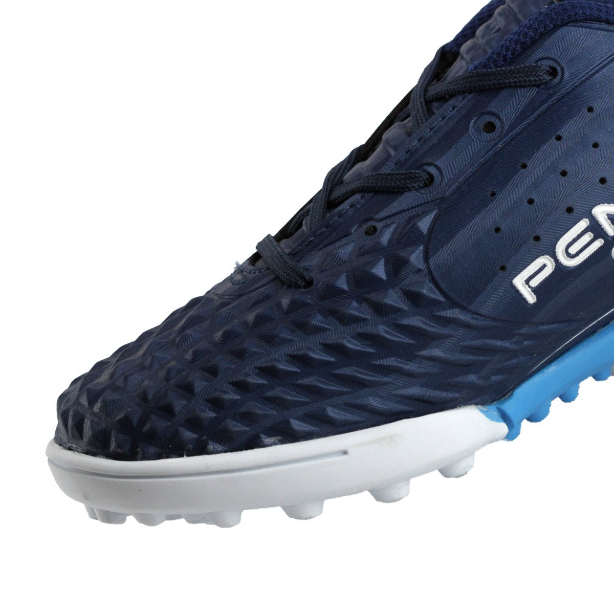 Descricao: Chuteira Penalty Society Se7e XXI Azul e Branca - Infantil. Criada pela Penalty, a chuteira da linha Se7e XXI, foi projetada para os craques que buscam brilhar em seus jogos nos gramados society. Com cabedal Micro Power em sintetico, ela possui sistemas que elevam suas habilidades e solado com micro travas fixas. Garanta ja a sua! DETALHES TECNICOS: Genero: Infantil Cabedal: Sintetico com partes em textil Solado: Borracha com micro travas fixas Indicado para: Society Entressola: EVA Forro: Material textil respiravel Ajuste: Cadarco Palmilha: PU conformada, perfurada e removivel; facilita a higienizacao Garantia do fabricante: Contra defeito de fabricacao.