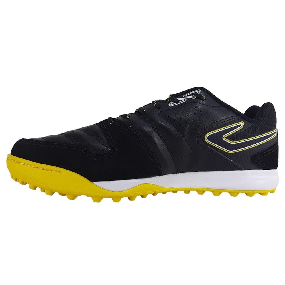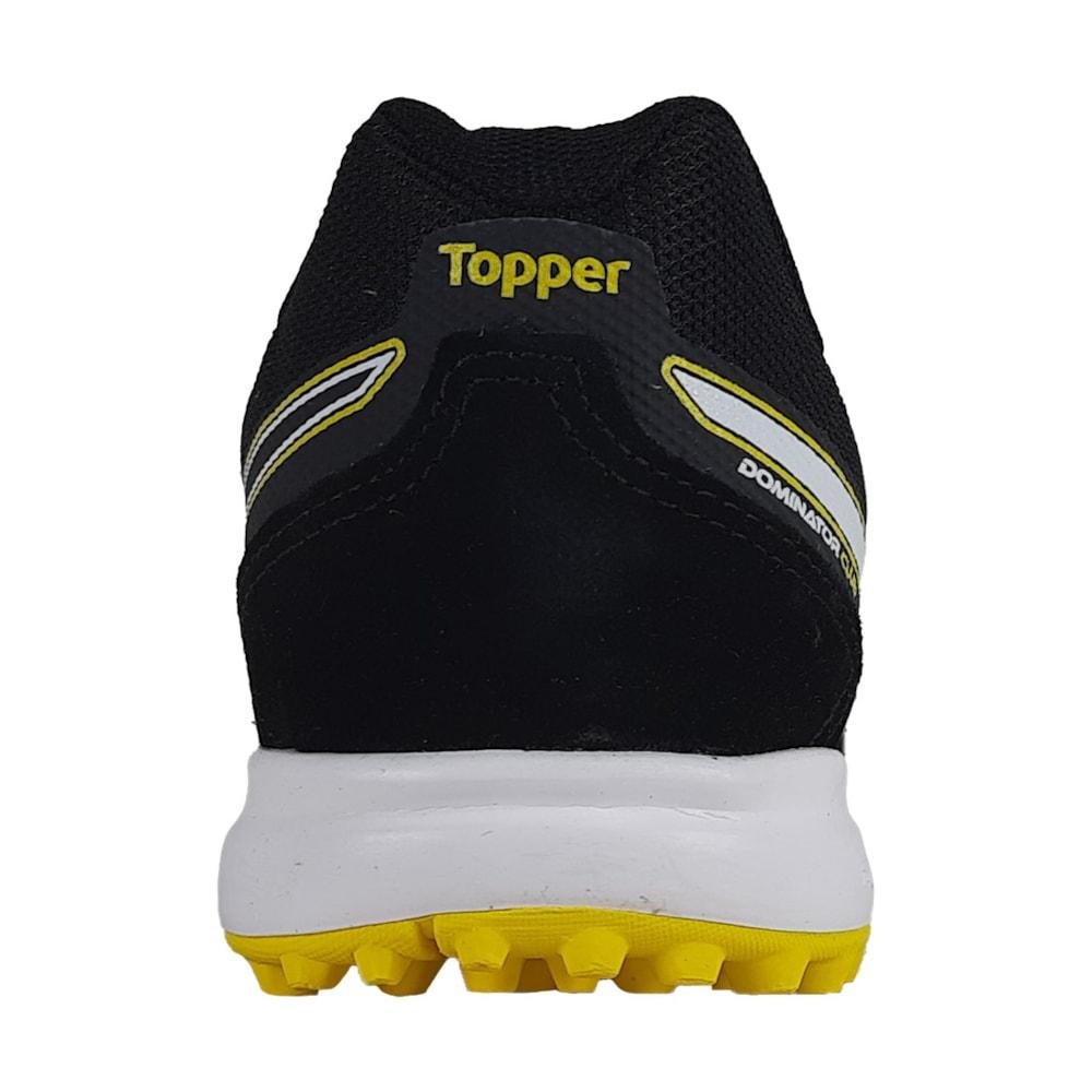 Fechamento em cadarço de amarrar e entressola em EVA com amortecimento T-Cushion que auxilia na absorção de impactos.O solado emborrachado conta com as tecnologias FlexZone, canaletas posicionadas estrategicamente para auxílio na flexibilidade dos pés. Modelo: Dominator Club V;Cor: Preto/Amarelo;Gênero: Masculino;Marca: Topper;Tecnologia: T-control, T-adapt, T-Cushion, FlexZone;Composição: Sintético;Tipo de Pisada: Neutra;