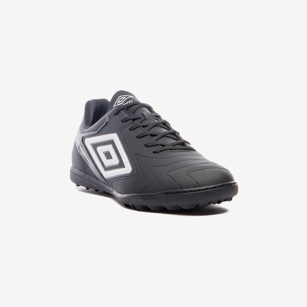 A Chuteira Society Umbro Master Class Club é ideal para jogadores que buscam conforto e controle em gramados sintéticos. O cabedal assimétrico em laminado com acabamento emborrachado traz texturas em alta frequência, grafismo exclusivo, Diamante Umbro lateral e costuras programadas que reforçam as áreas de maior contato com a bola. Possui palmilha em EVA conformado forrada e solado HG com entressola em EVA, travas geométricas e costura frontal blaqueada.