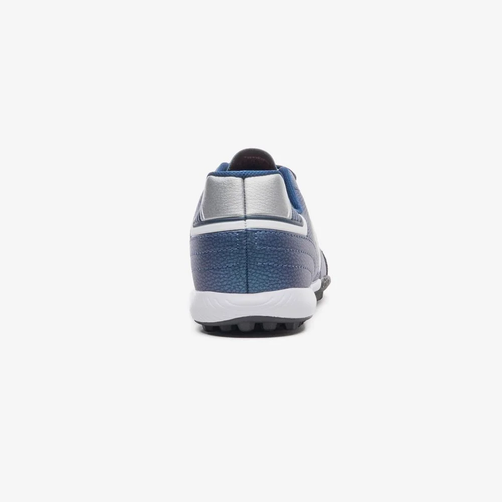 O solado bicolor, composto por TPU e EVA, oferece uma aderência superior ao solo, essencial para jogadas rápidas e mudanças de direção. As pequenas travas fixas de borracha distribuem-se pelo solado, proporcionando estabilidade e tração, fundamentais para um desempenho otimizado em gramados sintéticos.