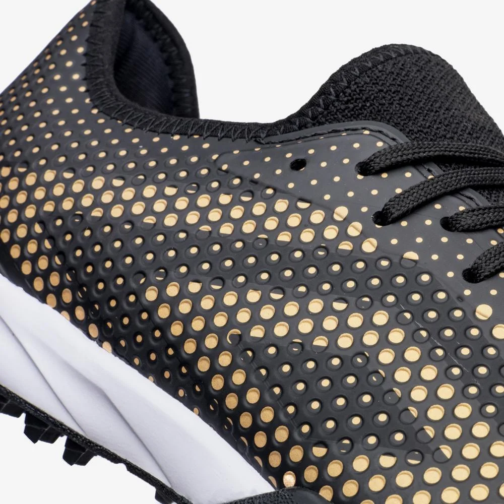 O solado é projetado para o jogo em campo society, com travas em estilo chevron que oferecem tração superior. A entressola em EVA injetado e a soleta em TPU garantem leveza e resistência, enquanto a costura de reforço frontal aumenta a durabilidade do produto, permitindo que você jogue com confiança e segurança.