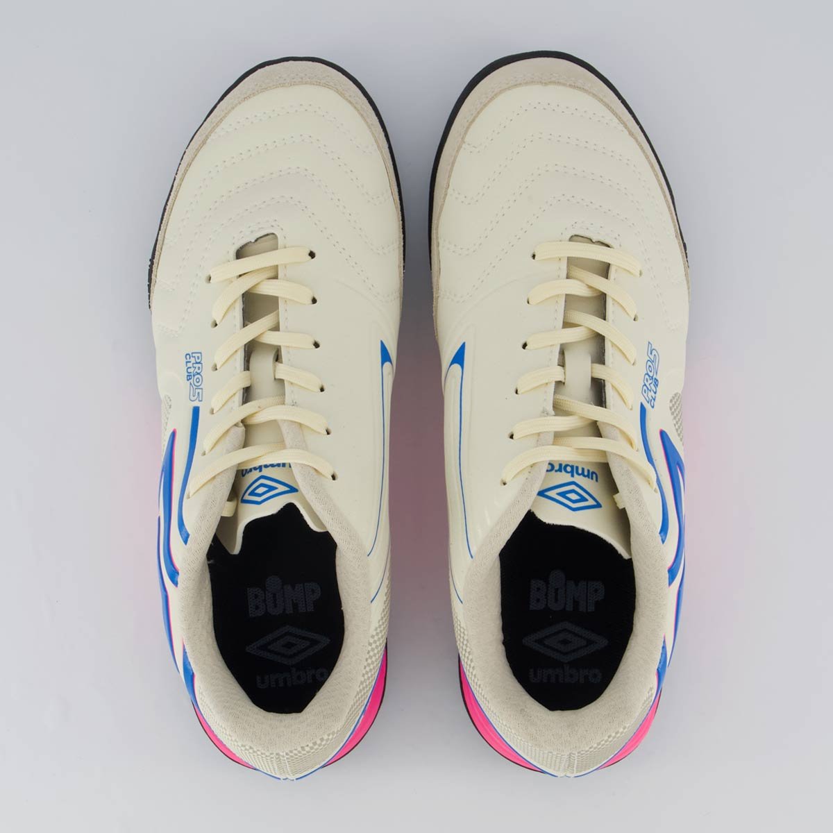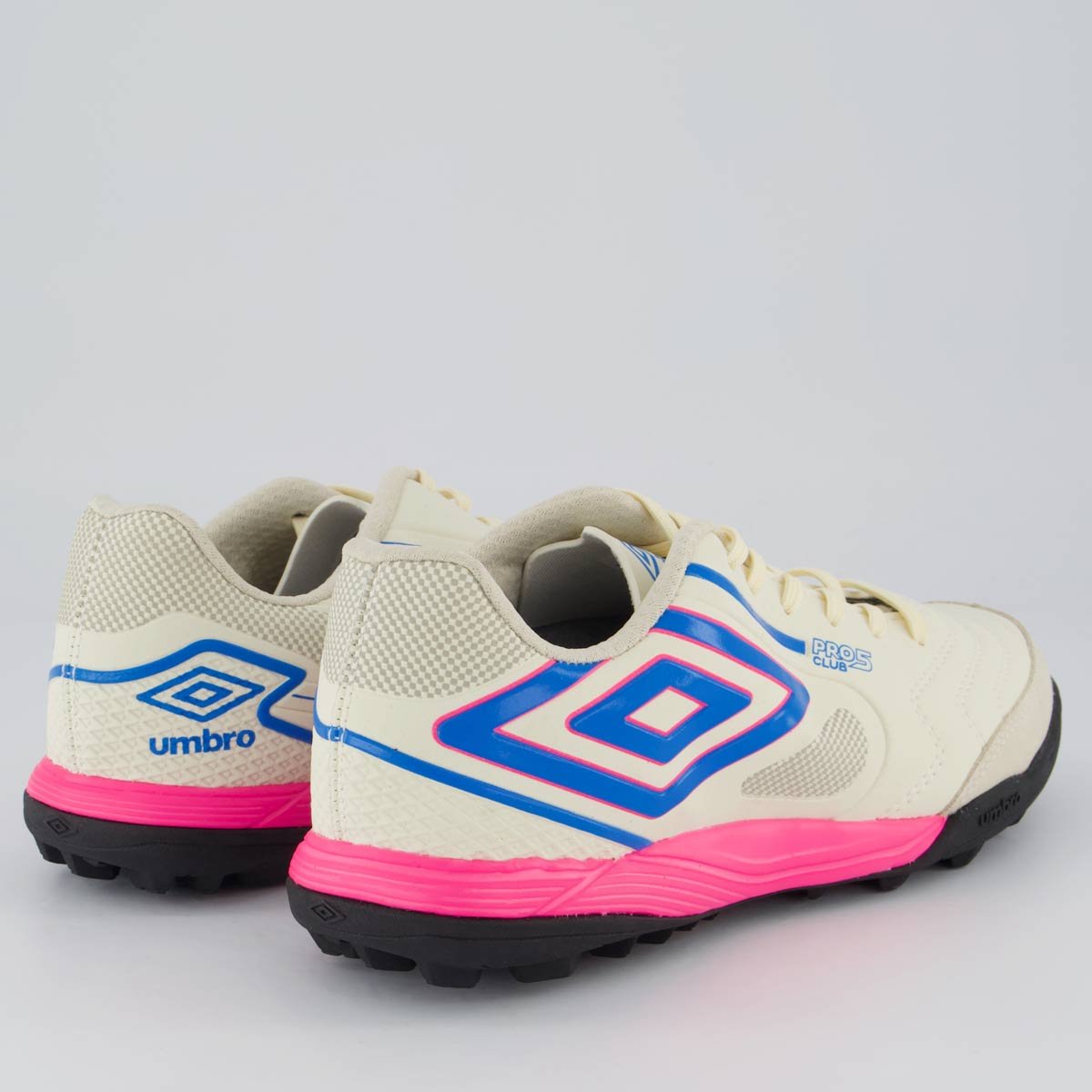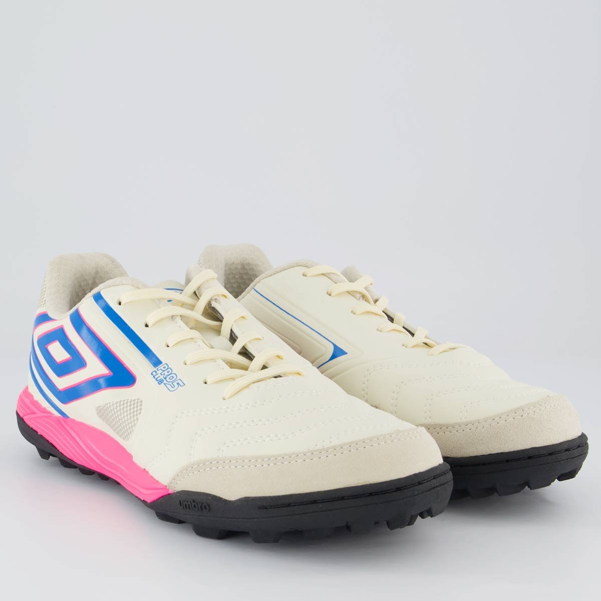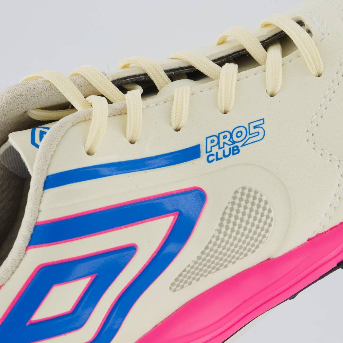 Chuteira Umbro Pro 5 Bump Club Society Branca e Rosa
