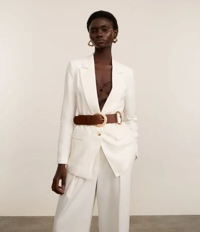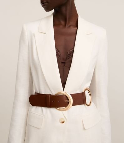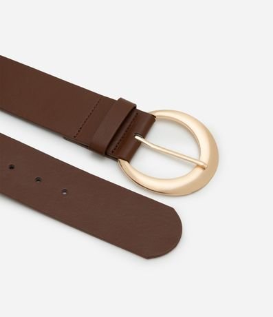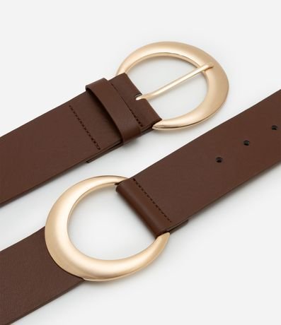 Cinto feminino confeccionado em material sintético no modelo largo com fivelas duplas redondas e contrastantes.