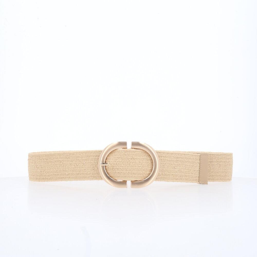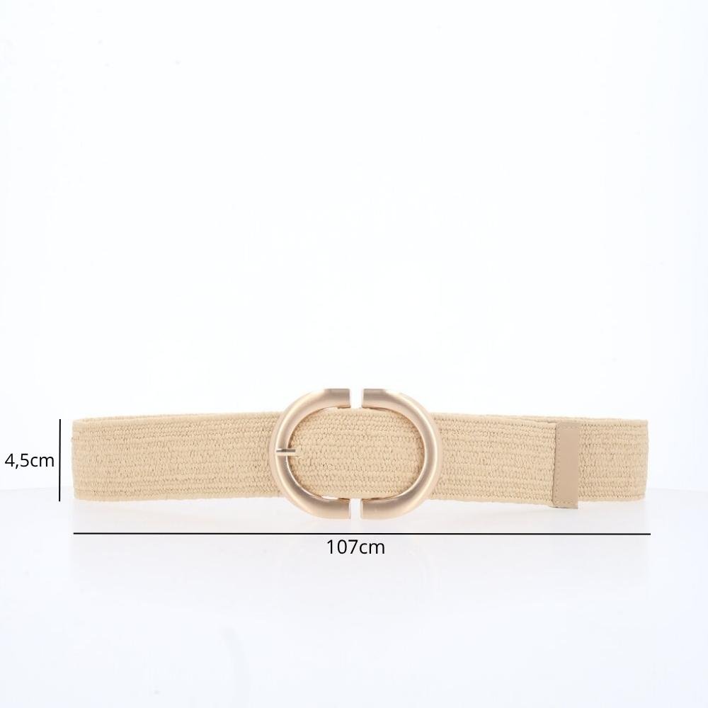 Cinto Feminino de Elástico em Ráfia com Fivela Quadrada Dourada – Cinto Largo Ajustável Verão Casual