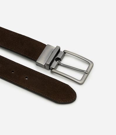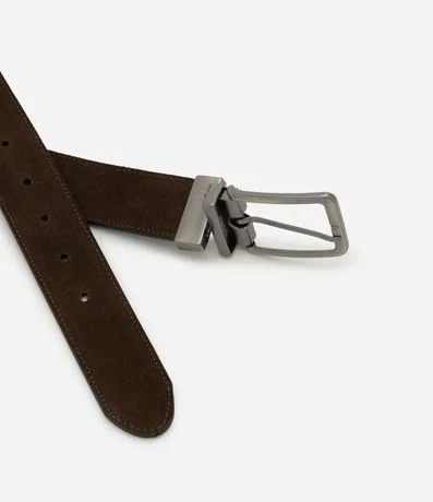 Ref: Cinto masculino dupla face confeccionado em couro certificado e boas práticas ambientais com acabamento em camurça e napa, fechamento por fivela giratória reversível e níveis de ajuste. Design versátil, ideal para looks casuais e sociais.