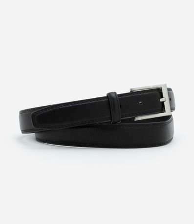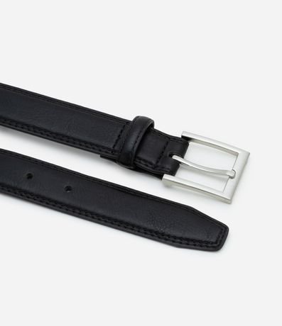 Cinto masculino confeccionado em pu com fivela quadrada, relevo e padronagem média.