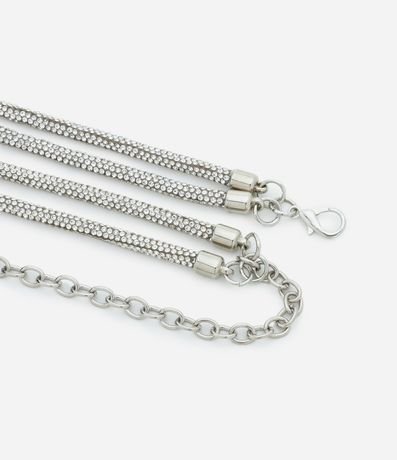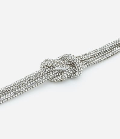 Ref: Cinto feminino em metal no modelo estreito com strass e detalhe de nózinho.
