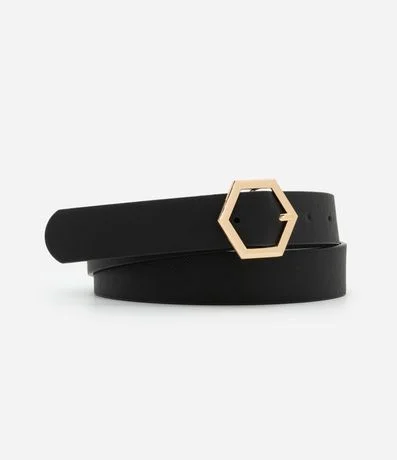 Ref: Cinto feminino médio, fivela em metal com formato hexagonal