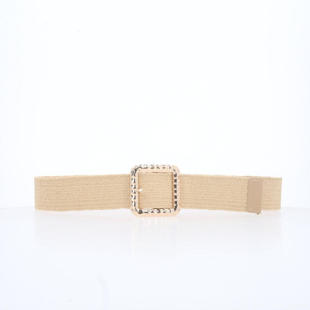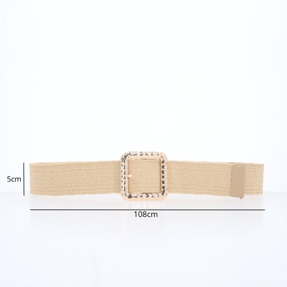 Cinto Feminino de Ráfia com Fivela Quadrada Dourada – Cinto Largo Estilo Verão Casual Elegante