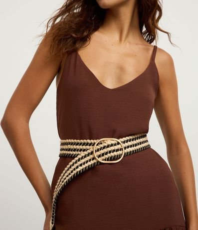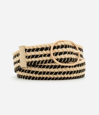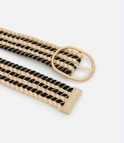 Ref: Cinto feminino largo listrado diferenciado com fios metalizados, fivela fina redonda, bicolor