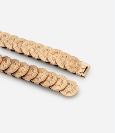 Ref: Cinto médio com elástico e discos metalizados com texturas aplicados.