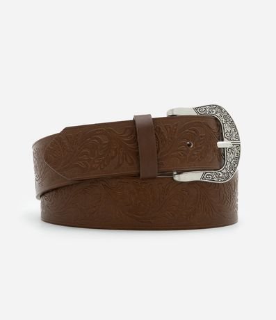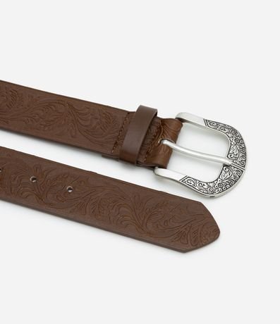 Ref: Cinto feminino confeccionado em material sintético, modelo médio com textura e fivela contrastante.