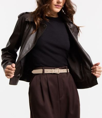 Ref: Cinto feminino médio, com fivela geométrica na mesma cor do cinto e passante também na mesma cor.