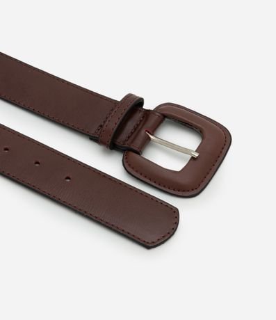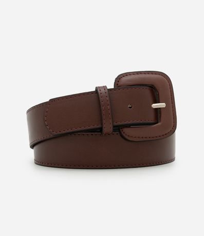 Ref: Cinto feminino de largura média, confeccionado em couro, com fivela quadrada forrada de cantos arredondados.