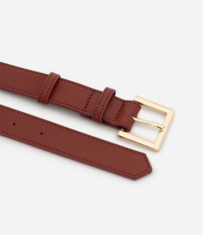 Ref: Cinto feminino confeccionado em material sintético com fivela quadrada contrastante.
