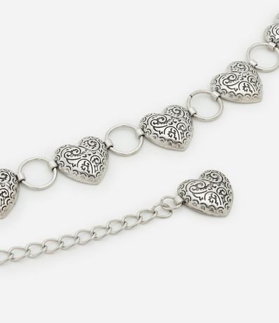 Ref: Cinto de metal estilo boho com corrente e corações trabalhados.