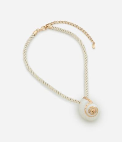 Colar curto em cordão torcido, com fechamento lagosta e pingente grande de concha.