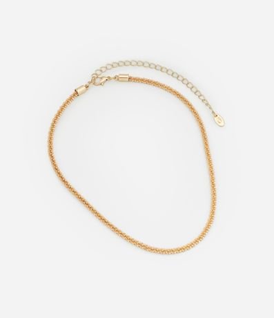 Ref: Colar curto em metal com efeito brilhoso com fechamento por lagosta.