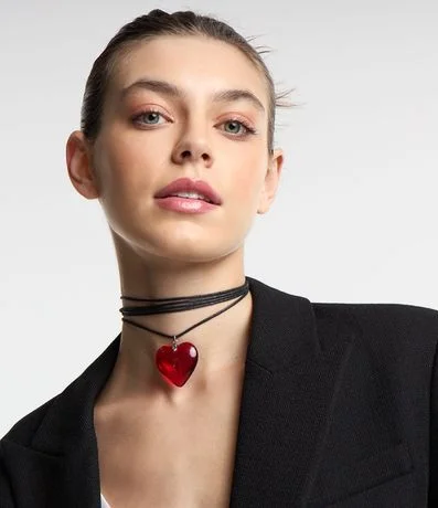 Colar em Cordão com Fio Encerado e Pingente de Coração