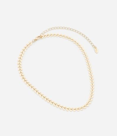 Ref: Colar dourado com camadas de mini folhas. Design moderno, banho ouro light e metal reciclado. Eleva o look com estilo, leveza e moda responsável.
