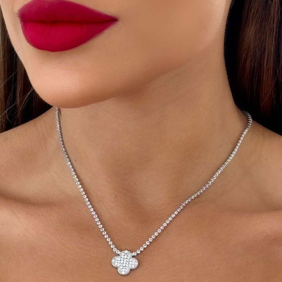 Colar Feminino Folheado Prata Cordão Cravejado Com inspiração Vg - Prata