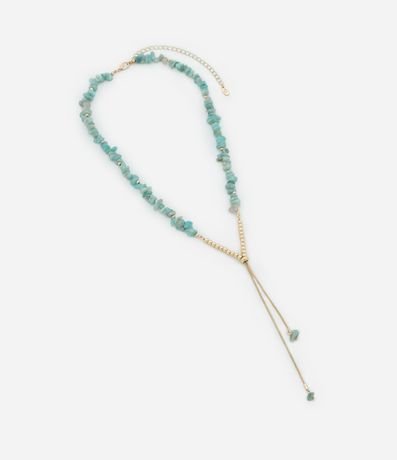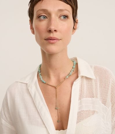 Ref: Colar gravatinha com ajuste frontal, cascalhos, esferas e pedrinhas nas ponteiras. Produto confeccionada em metal reciclado.