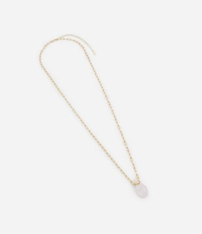 Ref: Colar longo com corrente de elos e pingente perfurado de pedra natural. Produto confeccionado em metal reciclado.