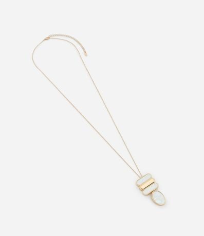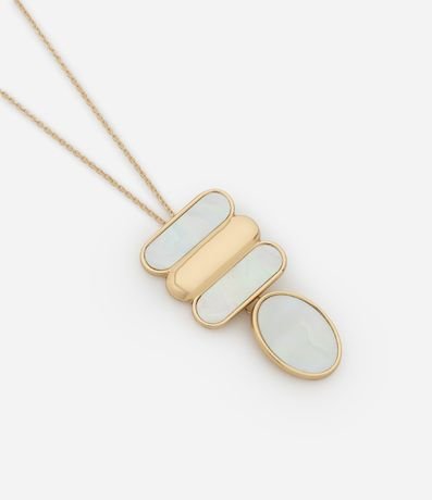 Ref: Colar longo com pendente de formas variadas e pingente redondo com madrepérola.