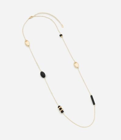 Ref: Colar longo em metal, com fechamento por lagosta e miçangas com formatos variados em resina.