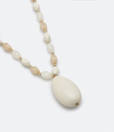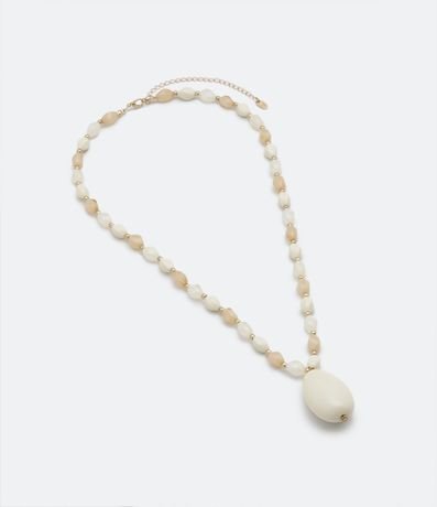 Ref: Colar longo, com níveis de ajuste, miçangas e pingente em resina oval.