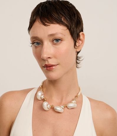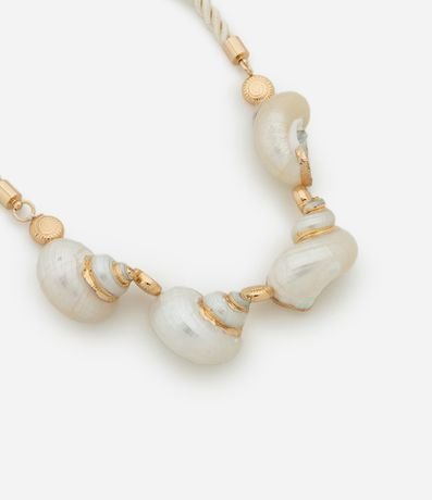 Ref: Colar maxi em cordão torcido, com fechamento lagosta e pingentes grandes de concha.