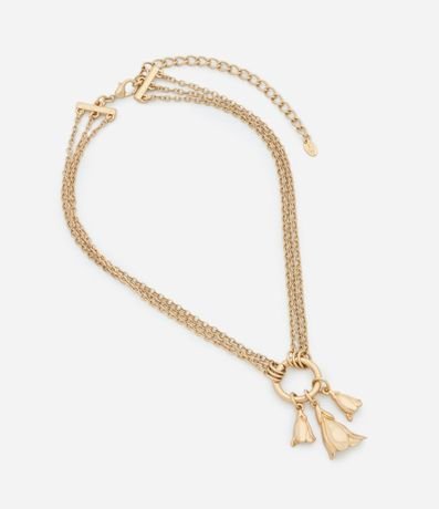 Colar Médio em Metal com Corrente Tripla e Pingentes de Flor