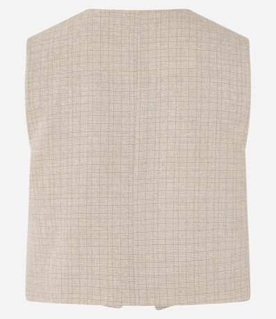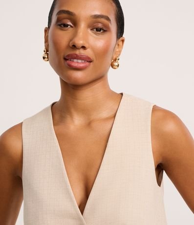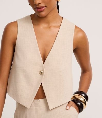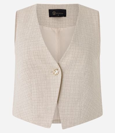 Ref: Colete alfaiatado, confeccionado em tecido plano, com decote V, botão diferenciado para fechamento, brilho e padronagem pontilhada.