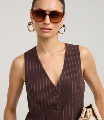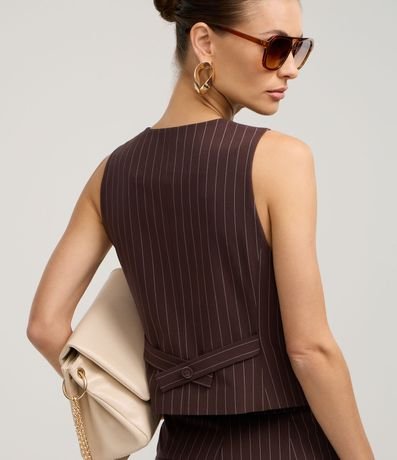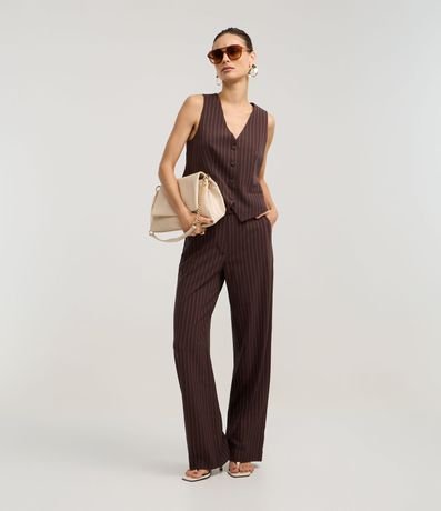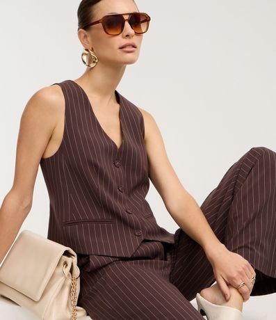 Ref: Colete alfaiatado, confeccionado em tecido plano 04% de elastano, com decote V, botões frontais forrados, bolsos falsos, barra em V e listras riscas de giz. Este produto possui viscose certificada em sua composição, sendo ambientalmente mais responsável.