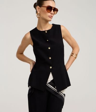 Colete Alfaiatado em Viscose com Barra Estruturada