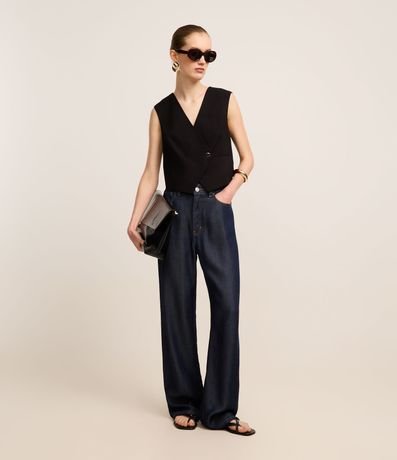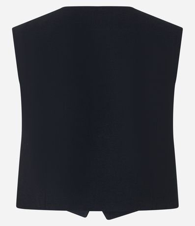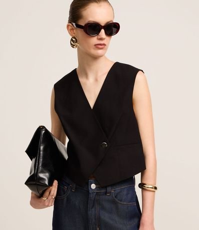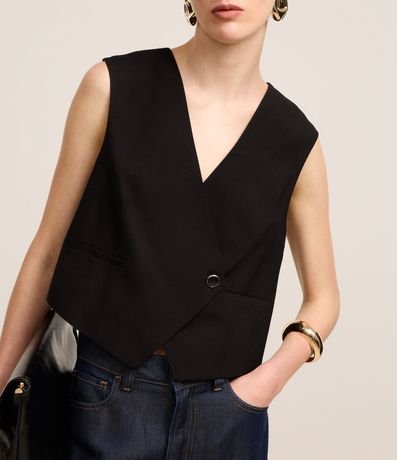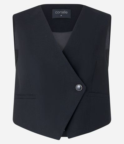 Ref: Colete de estrutura alfaiatada, confeccionado com viscose mais sustentável, com decote V transpassado com botão de resina. Roupa tem barra com recorte em formato de V invertido. Fabricado através de boas práticas ambientais .