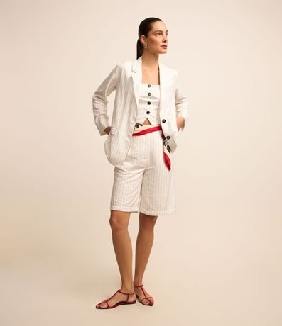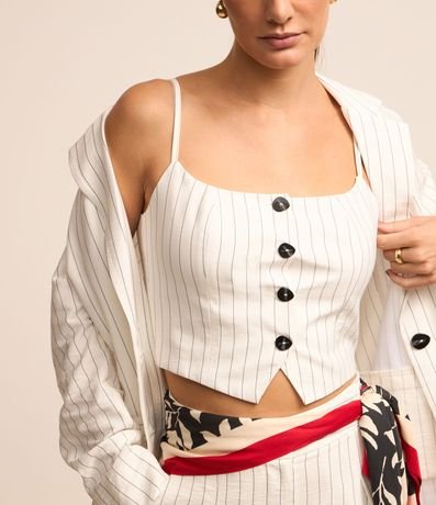 Colete Alfaiatado em Viscose Listrada com Detalhe V na Barra