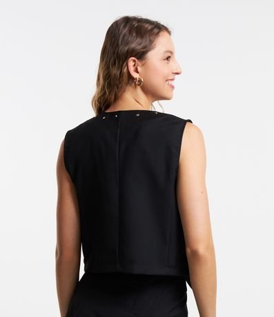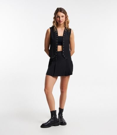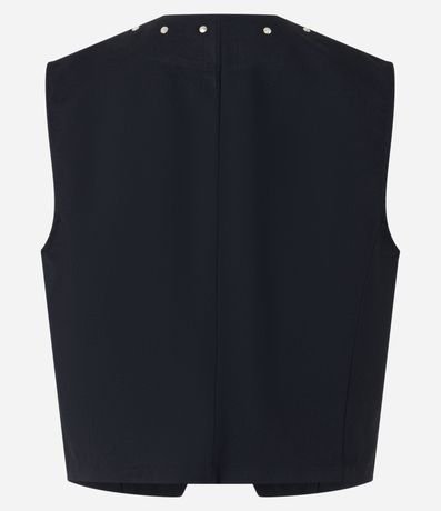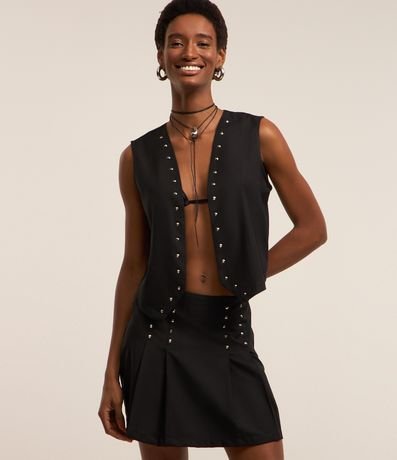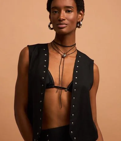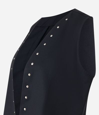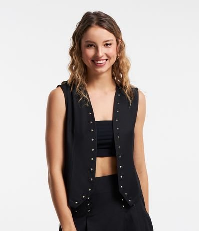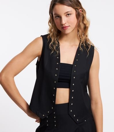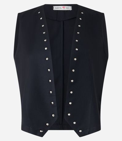 Colete com estutura alfaiatada e abertura total. Conta com tachas metalizadas.