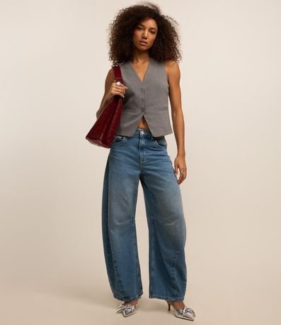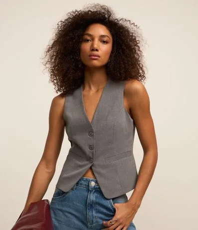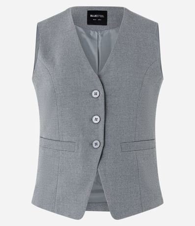 Ref: Colete alongado, alfaiataria com decote V, abotoamento frontal e bolsos embutidos.